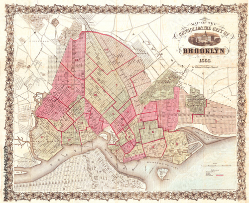 Obraz premium 1868, Bishop Pocket Map of Brooklyn, New York