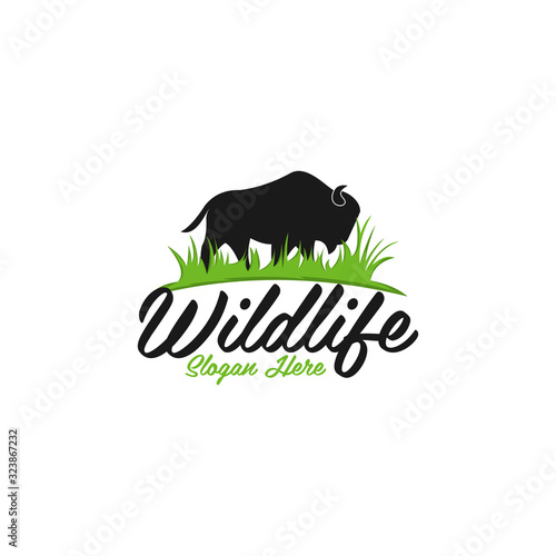 Obraz premium Bison Animal Wildlife Silhouette Illustration Icon Logo Design Template...