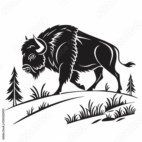 © MK, Obraz premium bison black sihouette vrctor