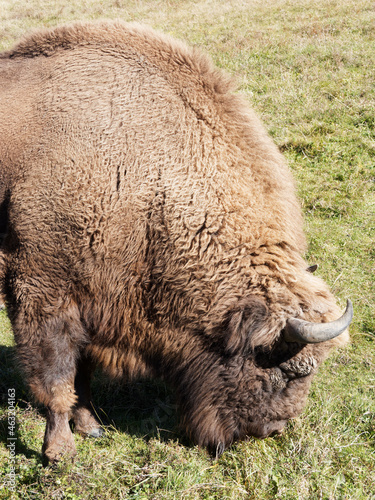 Fototapeta premium (Bison bonasus) Portrait of wisent male european bison, large bulls, ruminant...