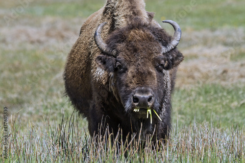 © Katrin, Fototapeta premium Bison cow chewing grass, front view