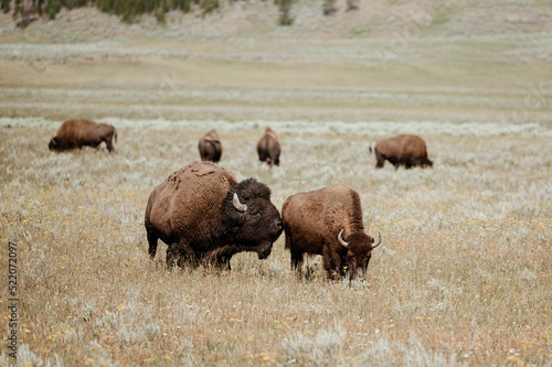 Fototapeta premium Bison Grazing in Hayden Valley, Yellowstone National Park