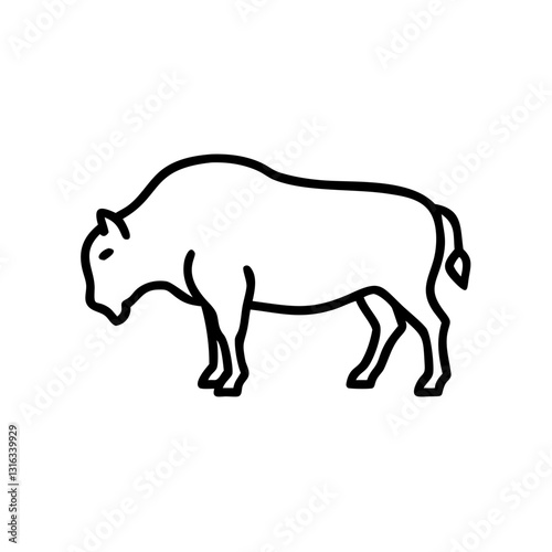 Fototapeta premium Bison icon standing in profile, black outline, modern design