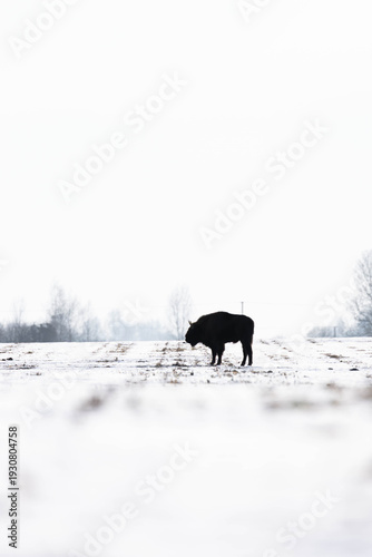 © Christina Pichler, Naklejka premium Bison im Feld im Schnee
