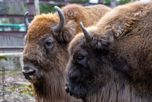 © Marina, Fototapeta premium Bison in a zoo enclosure, close-up