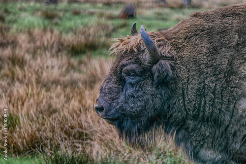 © Ilia Grechko, Fototapeta premium Bison in the Bialowieza Forest, side view