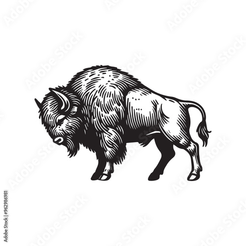 © Shineoxstock, Fototapeta premium Bison Logo Clipart - bison Vector Illustration in black and white