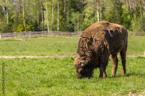 Fototapeta premium bison peacefully nips grass on the lawn