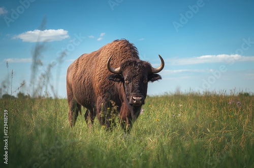 Obraz premium Bison roaming through lush meadow