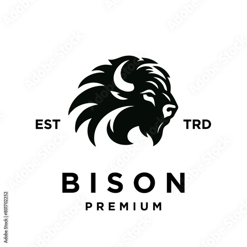 © JimzStd, Fototapeta premium Bison silhouettes and icons. black flat color simple elegant white background Bison animal vector and illustration.