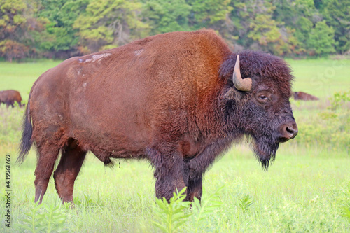 © Christine, Fototapeta premium Bison standing in a field in Tallgrass Prairie, Oklahoma