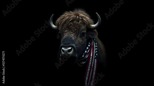© Feel Surreal, Naklejka premium Bison wearing America on black background, 4th of July, America Independence Day, created by generative ai