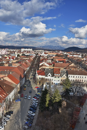 Obraz premium Bistrita, view from Evangelical Church , February 2016, Romania- Mountains of...