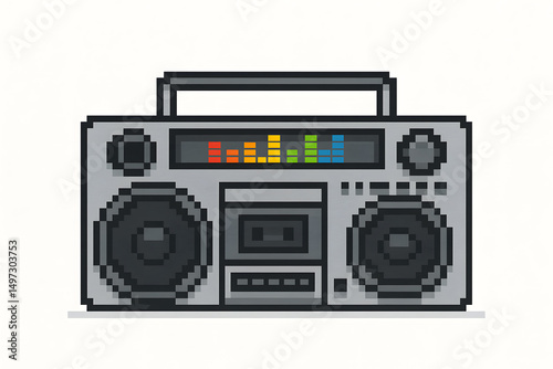 © Jānis Pūne, Obraz premium 8-Bit Pixel Retro Boombox With Speakers on White Background