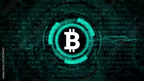 Obraz premium Bitcoin Cryptocurrency Symbol in a Digital Futuristic Interface with Binary...