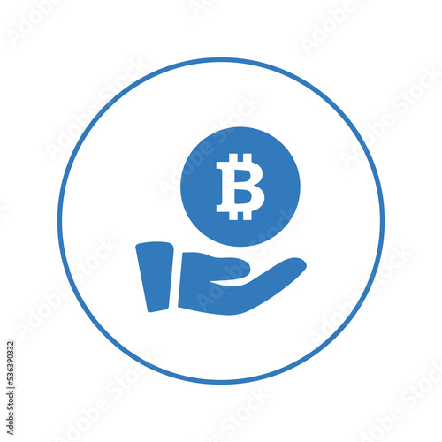 Obraz premium Bitcoin currency on hand icon | Circle version icon |