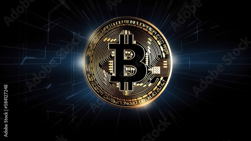 © Anna Elizabeth, Fototapeta premium bitcoin gold coins with sign on top, crypto technology copy space wallpaper, generative ai