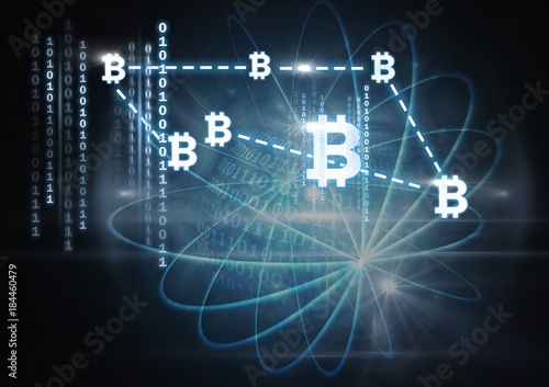 © vectorfusionart, Obraz premium bitcoin graphic icons and binary code connecting
