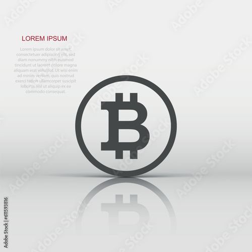 © Lysenko.A, Obraz premium Bitcoin icon in flat style. Blockchain vector illustration on white isolated background. Cryptocurrency business concept.