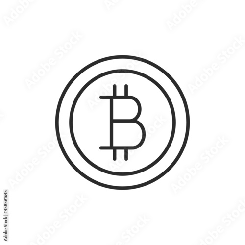 © InvisionFrameStudio, Obraz premium Bitcoin icon. Lined circle with bitcoin sign isolated on white background. Thin line icon for social media and web design. Vector illustration