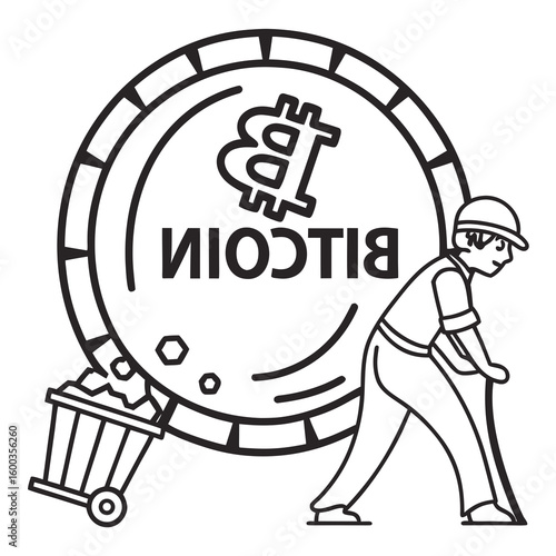 © Sa, Fototapeta premium Bitcoin miner with cart and symbol cryptocurrency mining