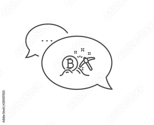 Obraz premium Bitcoin mining line icon. Chat bubble design. Cryptocurrency coin sign....
