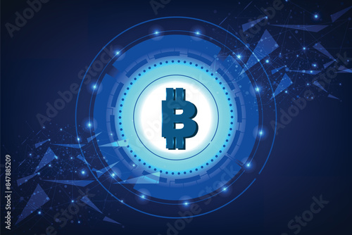 Fototapeta premium Bitcoin polygonal vector illustration on a blue background. Cryptocurrency...