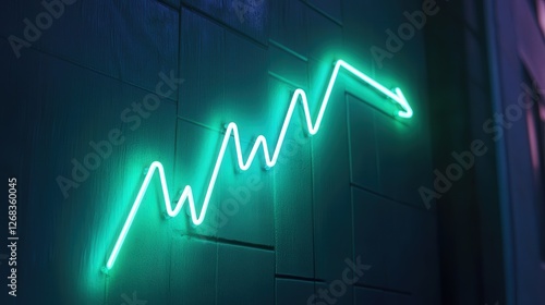 © Athirat, Naklejka premium Bitcoin's value growing, illustrated with a glowing green line graph pointing towards the top right, symbolizing financial success.