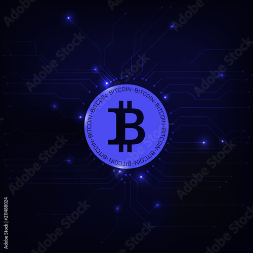 © Maryna, Obraz premium Bitcoin symbol, blue background.