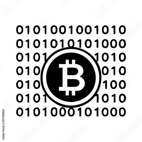 © Olga, Obraz premium Bitcoin symbol with binary code background