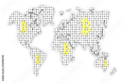 Fototapeta premium BITCOIN world map in the form of binary code, 3D illustration