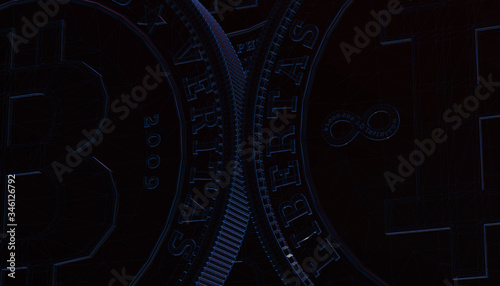 Obraz premium Bitcoins, new virtual money on various digital background, 3D render