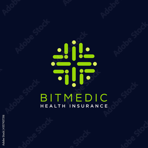 Fototapeta premium bitmedic logo, creative abstract line art cross health vector