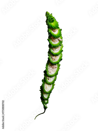 Naklejka premium Bitter Gourd Slice Art, Green Vegetable Creativity