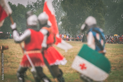 © malgo_walko, Naklejka premium Bitwa pod Grunwaldem, średniowieczna bitwa z Krzyżakami, rekonstrukcja. Średniowieczne rycerstwo.