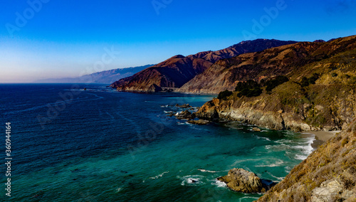 © Hermosa Drones, Naklejka premium Bixby Creek Bridge Big Sur Central Coast California afternoon haze fall day Pacific Coast Highway PCH
