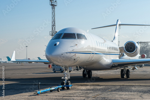 © Pitcher, Obraz premium Biznesowy samolot odrzutowy na ziemi.