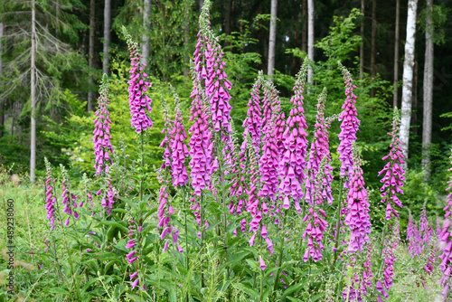 © Rhönbergfoto, Naklejka premium Blühende Fingerhüte am Waldrand