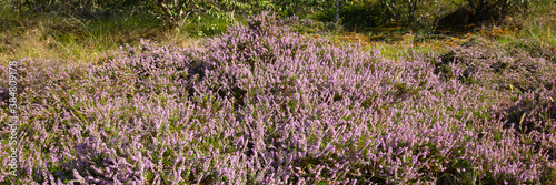 Naklejka premium Blühende Heide im Naturschutzgebiet Woldedünen, Borkum, Ostfriesische Insel,...
