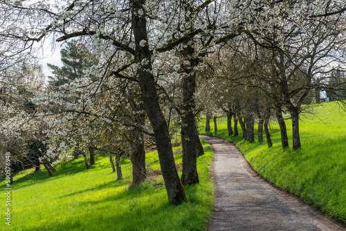© Donnerbold, Obraz premium Blühende Kirschbaumallee