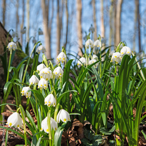 Obraz premium Blühende Märzenbecher, Leucojum vernum, im Frühling