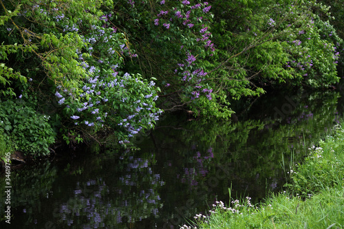 © Joerg Sabel, Fototapeta premium Blühender Flieder an einem Bach