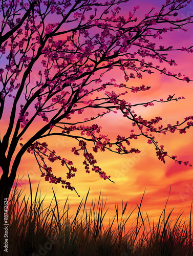 © Cedric, Obraz premium Blühender Kirschbaumweg mit sanfter Lichtstimmung im Frühling