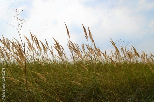 Fototapeta premium Blühendes Weidegras im Wind (Nahaufnahme