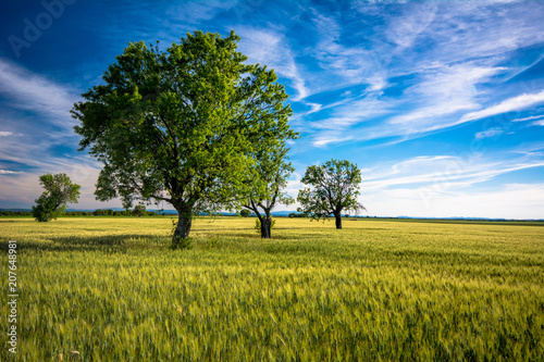 Fototapeta premium Blés verts et amandiers sur le Plateau de Valensole