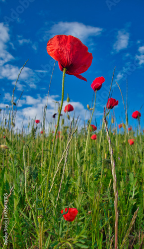 Obraz premium blüte einer Mohnblume vor blauem Himmel