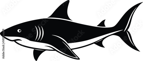 Fototapeta premium Blac shark silhouette of vector simple shark vector silhouette black color for animal element idea shark vector silhouette and Black shark image in white background