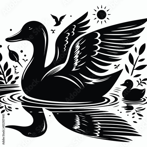 © Jomir, Obraz premium Black a duck silhouette vector illustration on white background