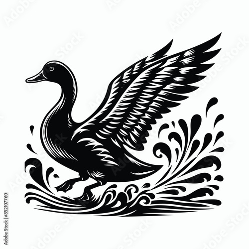 © Jomir, Fototapeta premium Black a duck silhouette vector illustration on white background