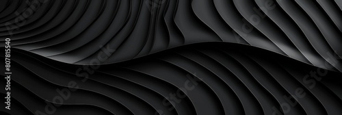 © Ahmed, Naklejka premium Black abstract background design. Modern wavy line pattern (guilloche curves) in monochrome colors. Premium stripe texture for banner, business backdrop. Dark horizontal vector template